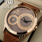 Time Worth Dual Time Stylish Brown Leather Strap Watch